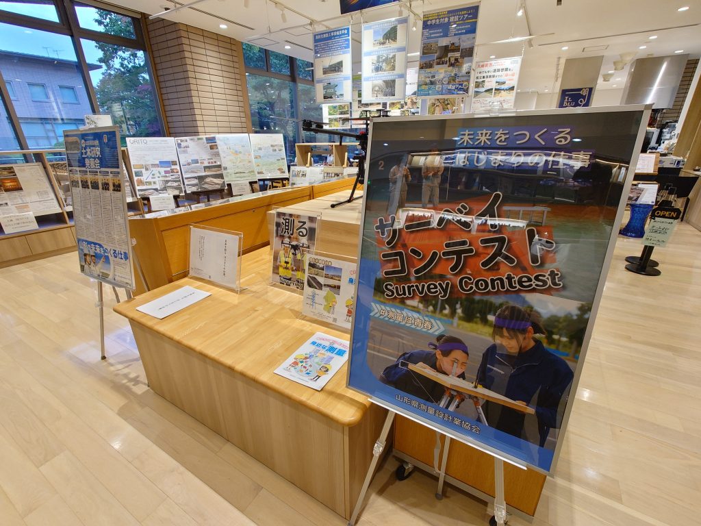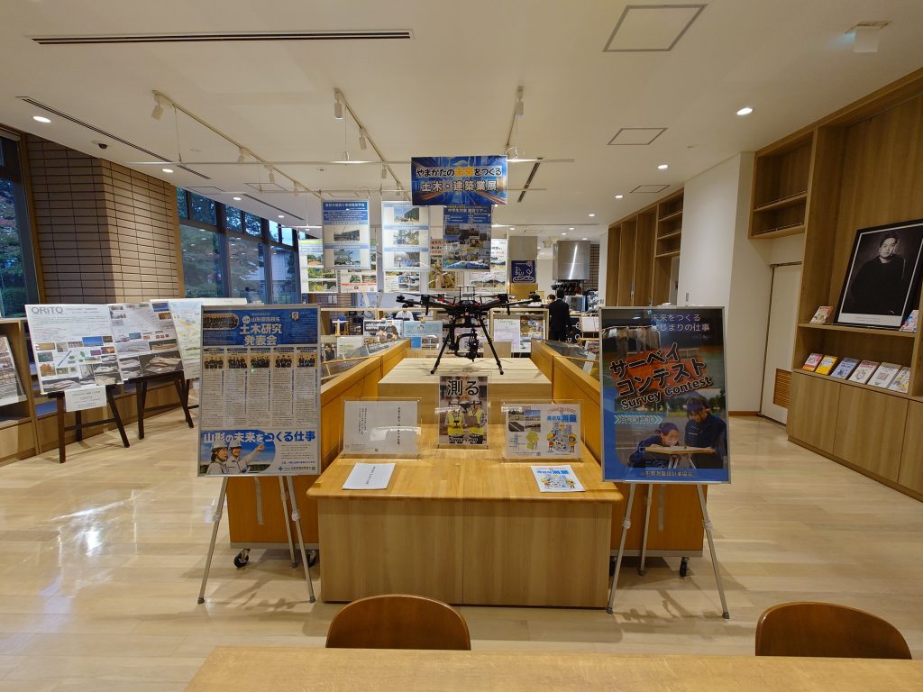 建設業界の人材確保を目的に、山形県県土整備部・山形県建設業協会と連携し、仕事の魅力を紹介する写真・パネル等の展示を行っています。